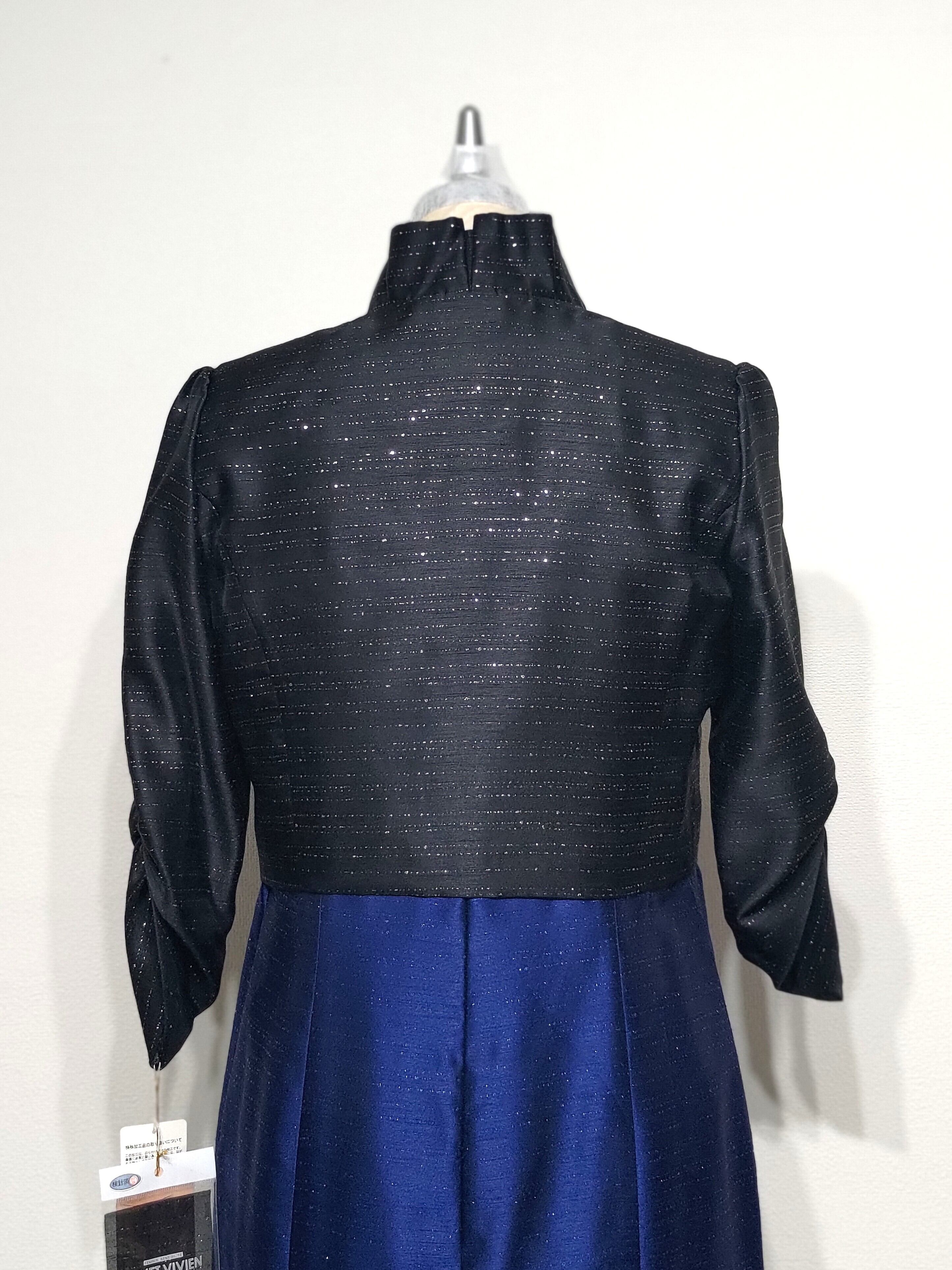 華やかな印象を与えるラメシャンタンフリルボレロです。このボレロは、上品なラメが散りばめられたシャンタン素材を使用しており、フォーマルなシーンで幅広くご利用いただける一着となっています。